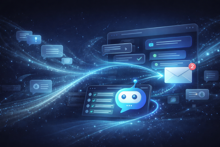 Ein intelligenter Website-Chatbot beantwortet häufige Fragen automatisch und leitet neue Anfragen zuverlässig per E-Mail weiter.